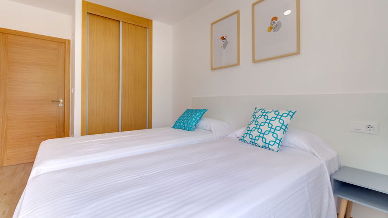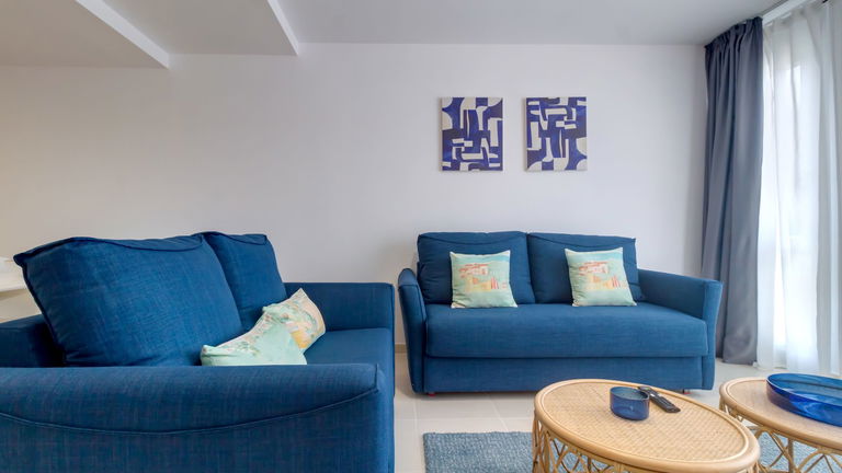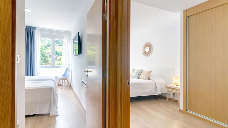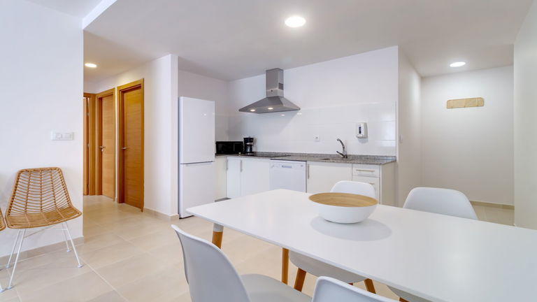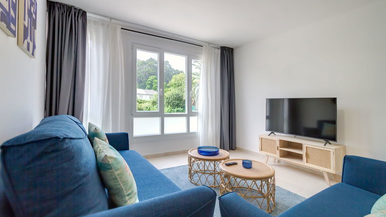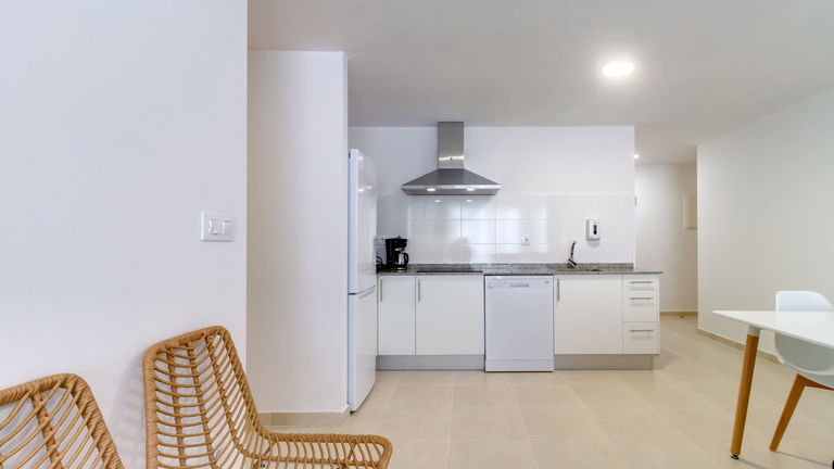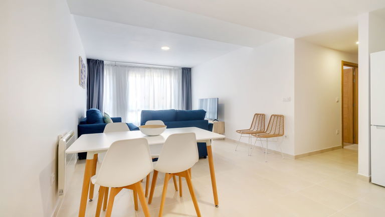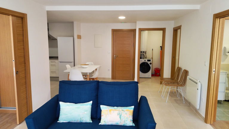 Composed by 2 bedroom and sofa bed in the living room. It has 32-inch TV, full bathroom with hair dryer, fully furnished kitchen with induction hob, microwave, dishwasher, coffee maker, toaster, blender and utensils. It also has a washing machine, iron, ironing board and bed and bath linen.