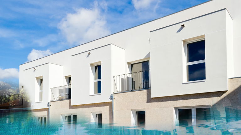 Capacity for 4/5 people distributed in main room with 150 cm double bed, secondary room with 2 beds and sofa bed in living room. They have private parking, outdoor pool, Wi-Fi, communal washer and dryer, private terrace with furniture, air conditioning and heating. They are equipped with a 40' Smart TV in the living room, a 32' TV in the main bedroom, an iron, an ironing board, a kitchen with induction hob, a refrigerator, a coffee maker, a dishwasher, a coffee maker and a toaster. They have kitchen utensils and bed and bath linen.