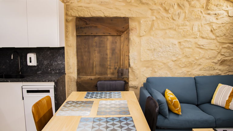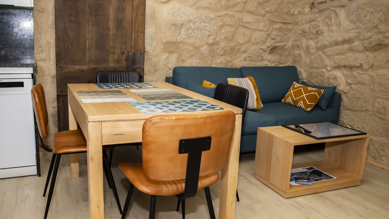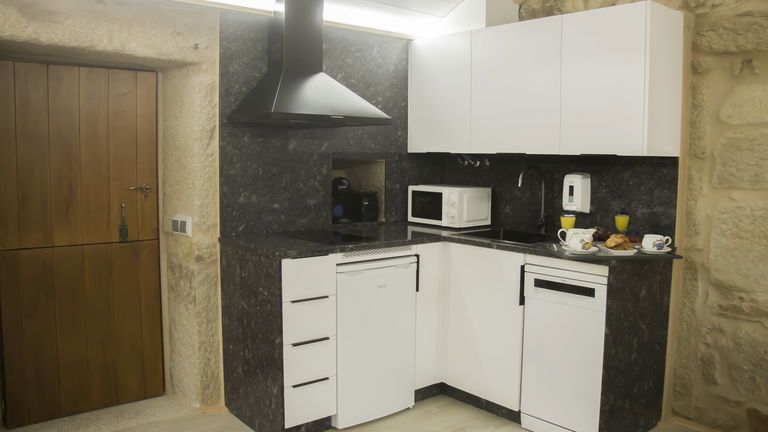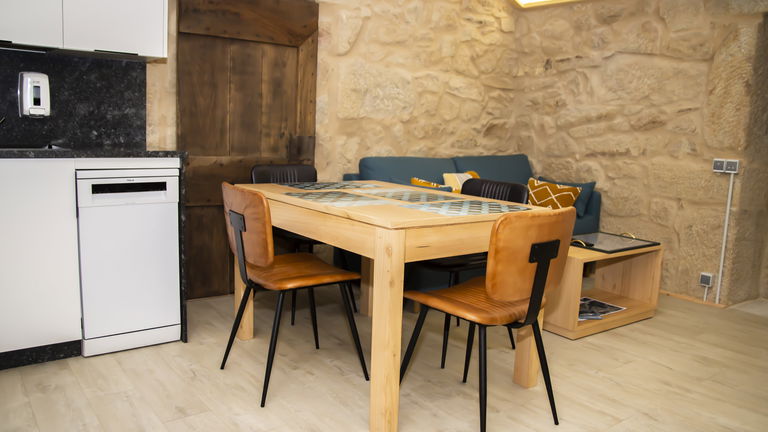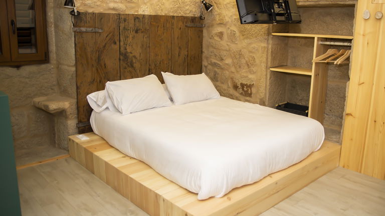 It is located in an independent room dating from 1930, restored maintaining its rural essence with local materials and noble woods treated by expert local artisan builders. Modern decoration with all the functionalities, 150 cm double bed and sofa in the living room. They have private parking, outdoor pool, Wi-Fi, communal washer and dryer, air conditioning and heating. They are equipped with a 40 'smartTV, a kitchen with a ceramic hob, fridge, dishwasher, coffee maker and toaster. They have kitchen utensils and bed and bathroom linen.