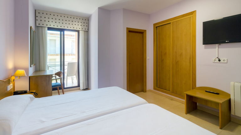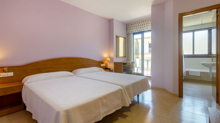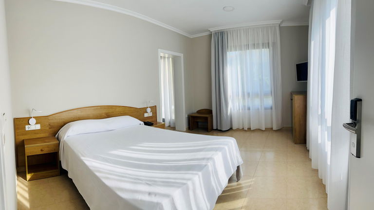 Quartos acolhedores que têm uma cama de casal e uma cama extra, ideais para uma estadia confortável. Os quartos dispõem de TV, varanda e banheiro privativo com banheira.
