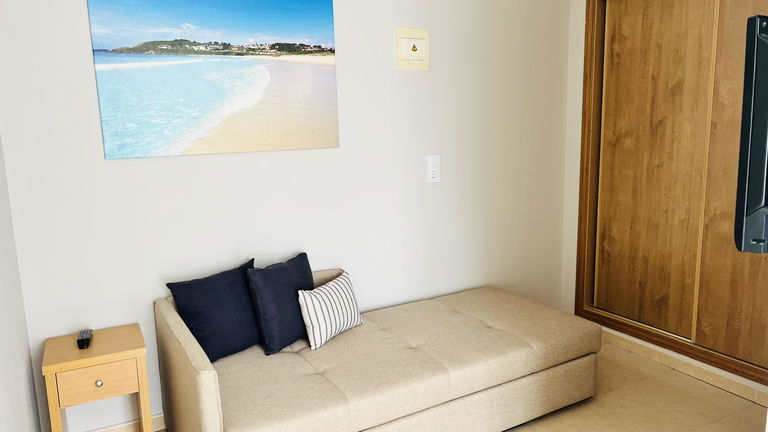 Quartos confortáveis com sala de estar que dispõem de cama de casal e sofá-cama, casa de banho privativa completa com placa de chuveiro, perfeito para desfrutar em família.