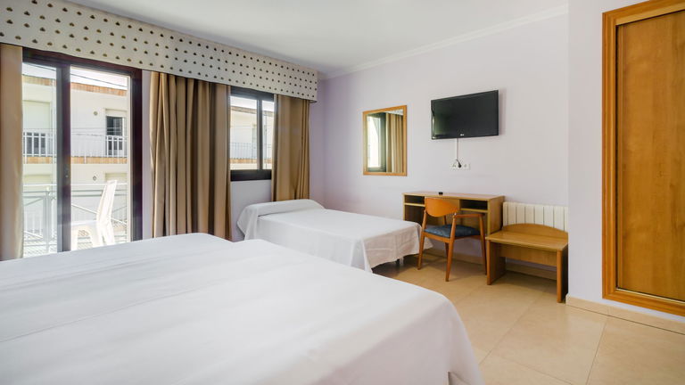 Quartos confortáveis que têm uma cama de casal e duas camas extras de 105 cm, a escolha perfeita para famílias com crianças ou para quatro adultos. Têm casa de banho privada completo com banheira e televisão.