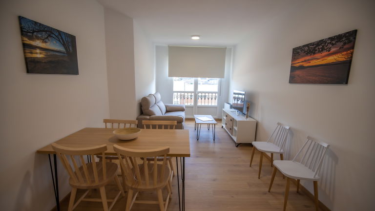 Apartamento de 3 quartos (com uma cama de casal de 150 cm no quarto principal, 2 camas de solteiro de 105 cm no quarto 2 e uma bicama de 90 cm ou cama de trem no quarto 3) e um sofá-cama na sala de estar. Eles têm aquecimento, 2 banheiros com chuveiro, secador de cabelo, cozinha totalmente equipada, microondas, lava-louças, cafeteira e utensílios. Dispõem ainda de Smart TV 43' na sala e Smart TV de 32' nos quartos, máquina de lavar roupa, ferro, tábua de engomar, roupa de cama e banho. Este exclusivo apartamento tem uma TERRAÇA PRIVADA de 25m2 virada para a ria do Viveiro.
