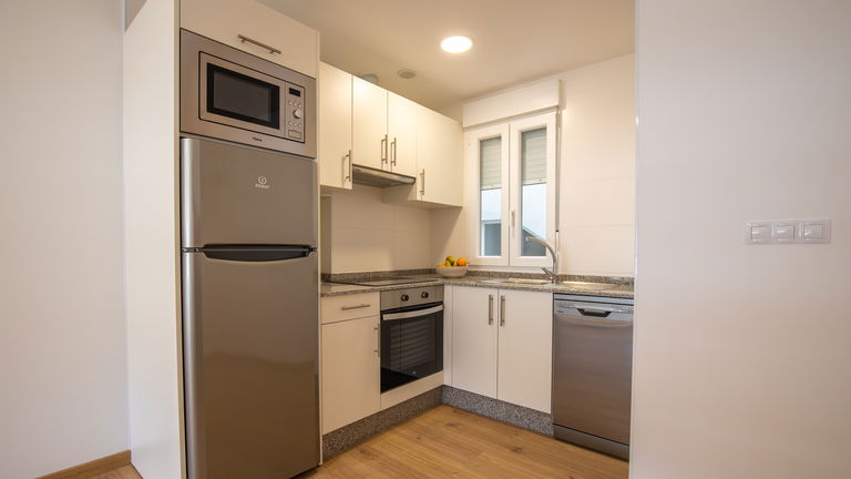Apartamentos de 3 quartos (com uma cama de casal de 150 cm no quarto principal, 2 camas de solteiro de 105 cm no quarto 2 e uma bicama de 90 cm no quarto 3) e um sofá-cama na sala de estar. Eles têm aquecimento, 2 banheiros com chuveiro e secador de cabelo, cozinha totalmente equipada, microondas, lava-louças, cafeteira e utensílios. Estão ainda equipados com Smart TV 43' na sala de jantar e máquina de lavar roupa, ferro e tábua de engomar, roupa de cama e banho.
