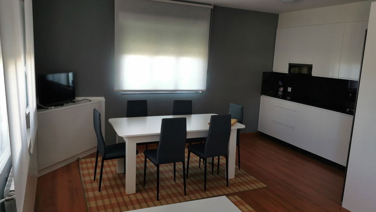 Apartamento composto por 2 quartos, um com cama de casal de 1,35cm e banheiro integrado no quarto e outro com 2 camas de solteiro e sofá-cama. Banheiro adaptado. Eles têm máquina de lavar louça, geladeira, forno de microondas, torradeira, cafeteira, espremedor de sumos, liquidificador, utensílios básicos de cozinha, TV, roupa de cama e toalhas. Wi-fi. Lavanderia compartilhada, com máquina de lavar, ferro e tábua de passar. Terraço com mesa e cadeiras. Área ajardinada. Acesso à piscina pelo Hotel Oca Vermar***. Recolha e entrega das chaves no Hotel Oca Vermar***